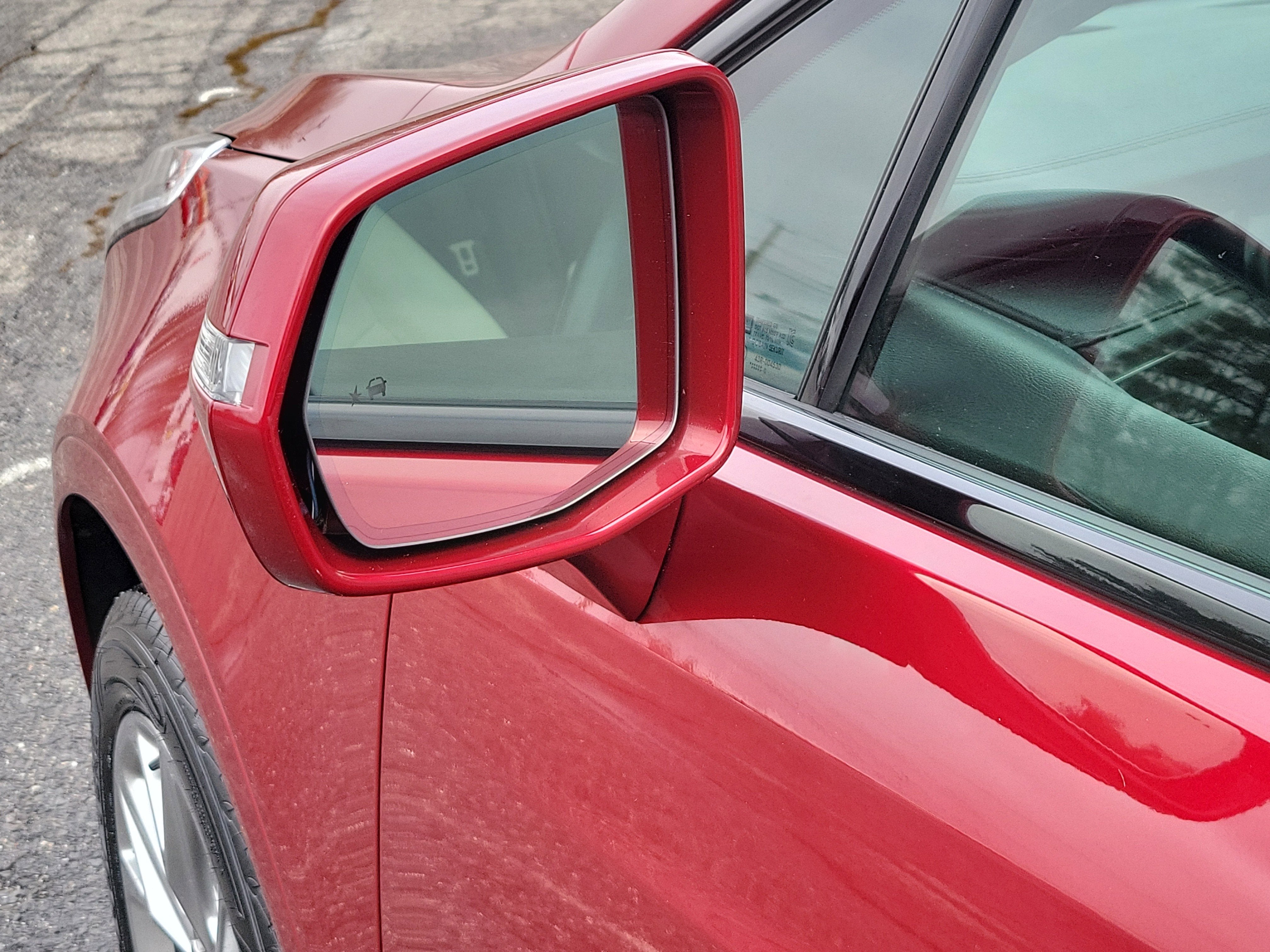 Red Horizon Tintcoat pops against 20-inch 12-spoke alloy wheels with pearl nickel finish, gloss black accents, and performance suspension. Power liftgate, rain-sensing wipers, auto-dimming heated mirrors with turn signals, and UltraView power moonroof create commanding presence. Adaptive chassis tuning and AWD handle curves with composed athleticism.
